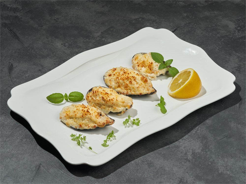 Мидии запеченые под сырным соусом